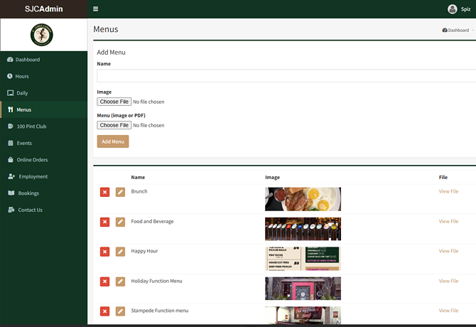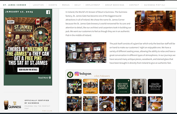 A client since 2009, custom programming provides management the ability to promote events and daily features and manage their Guinness pint club. Additionally, a custom web-based staff area provides access to staff scheduling and internal communication.